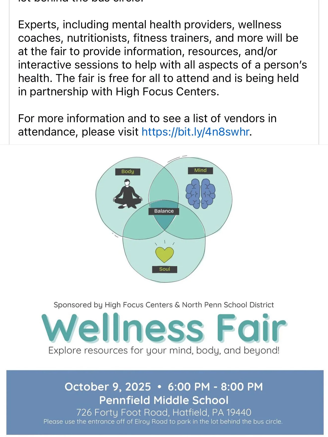 Explore resources for your mind, body, and beyond! Experts, including mental health providers, wellness coaches, nutritionists, fitness trainers, and more will be at the fair to provide information, resources, and/or interactive sessions to help with all aspects of a person’s health. Cost: FREE!!!
